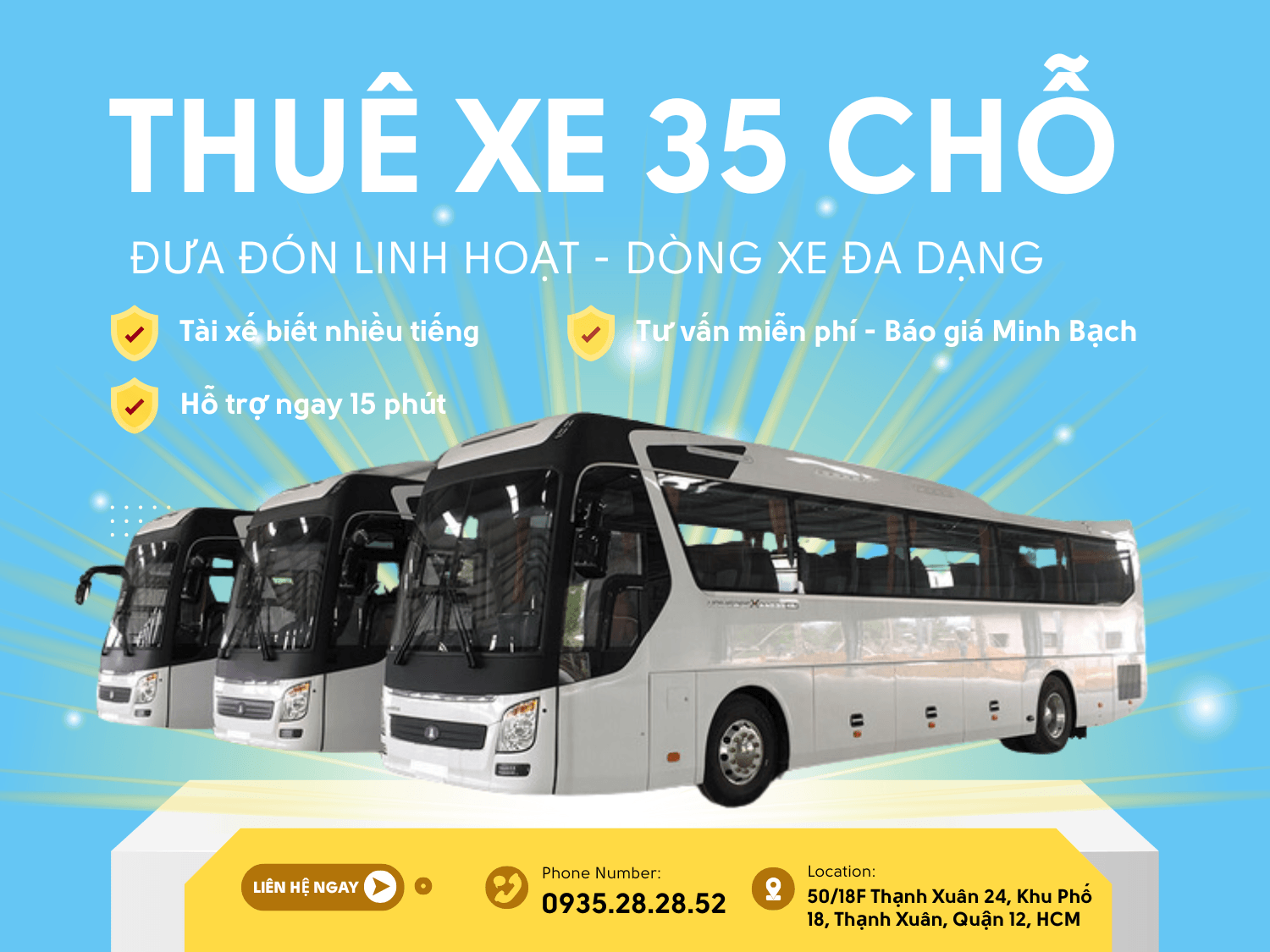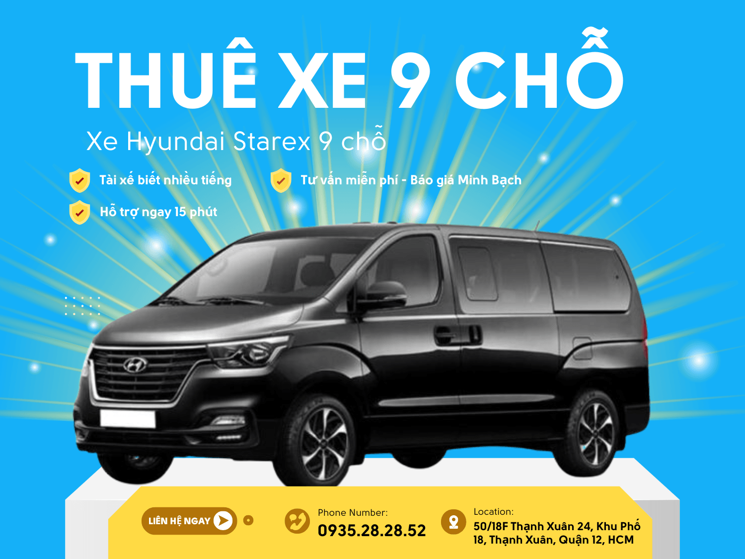 Hãy liên hệ ngay với Thuê Xe Du Lịch Hải Nguyên qua số điện thoại 0935.28.28.52 hoặc email thuexedulichhainguyen@gmail.com để được tư vấn và đặt xe ngay hôm nay. Chúng tôi luôn sẵn sàng đồng hành cùng bạn trên mọi hành trình!